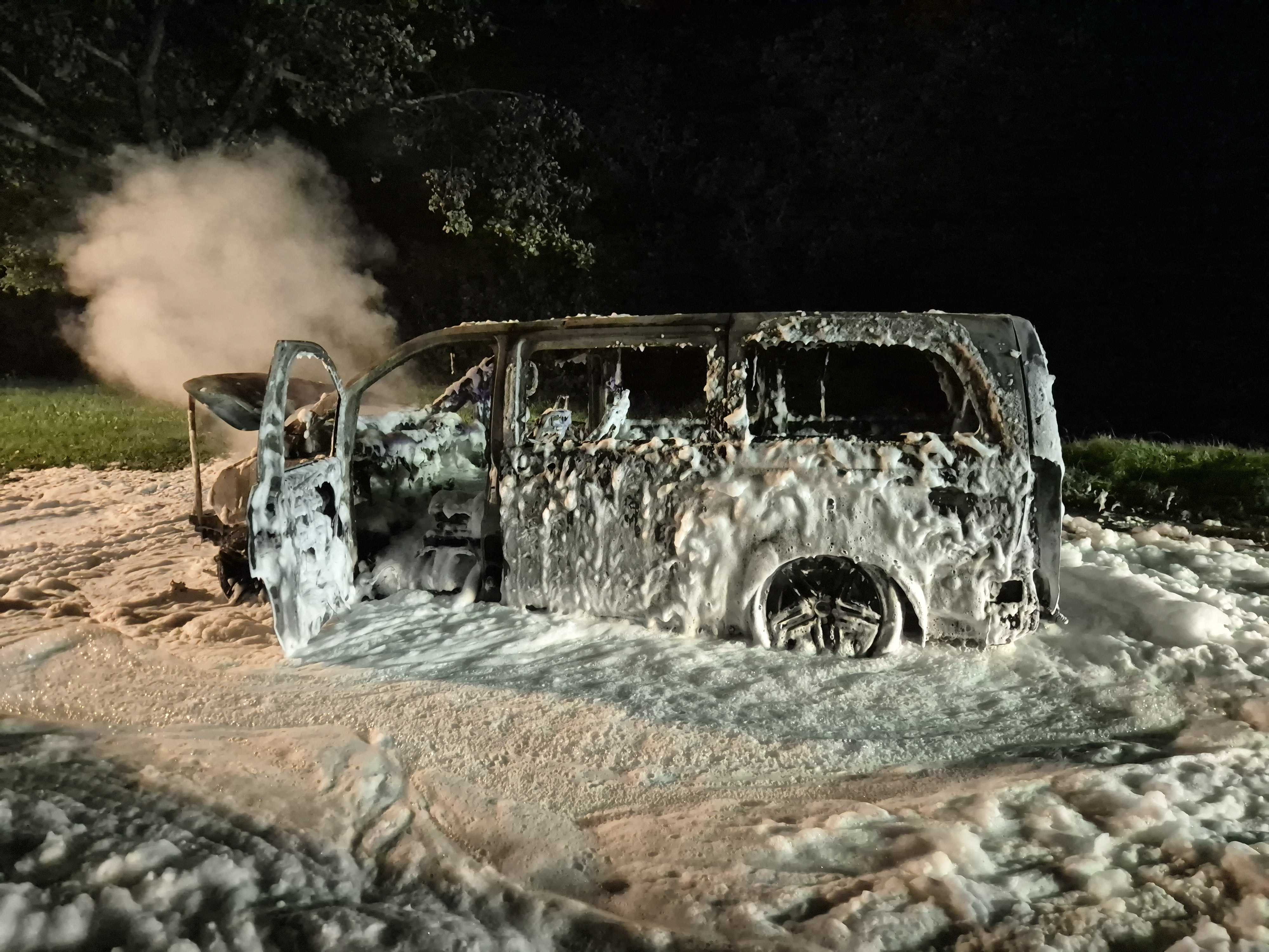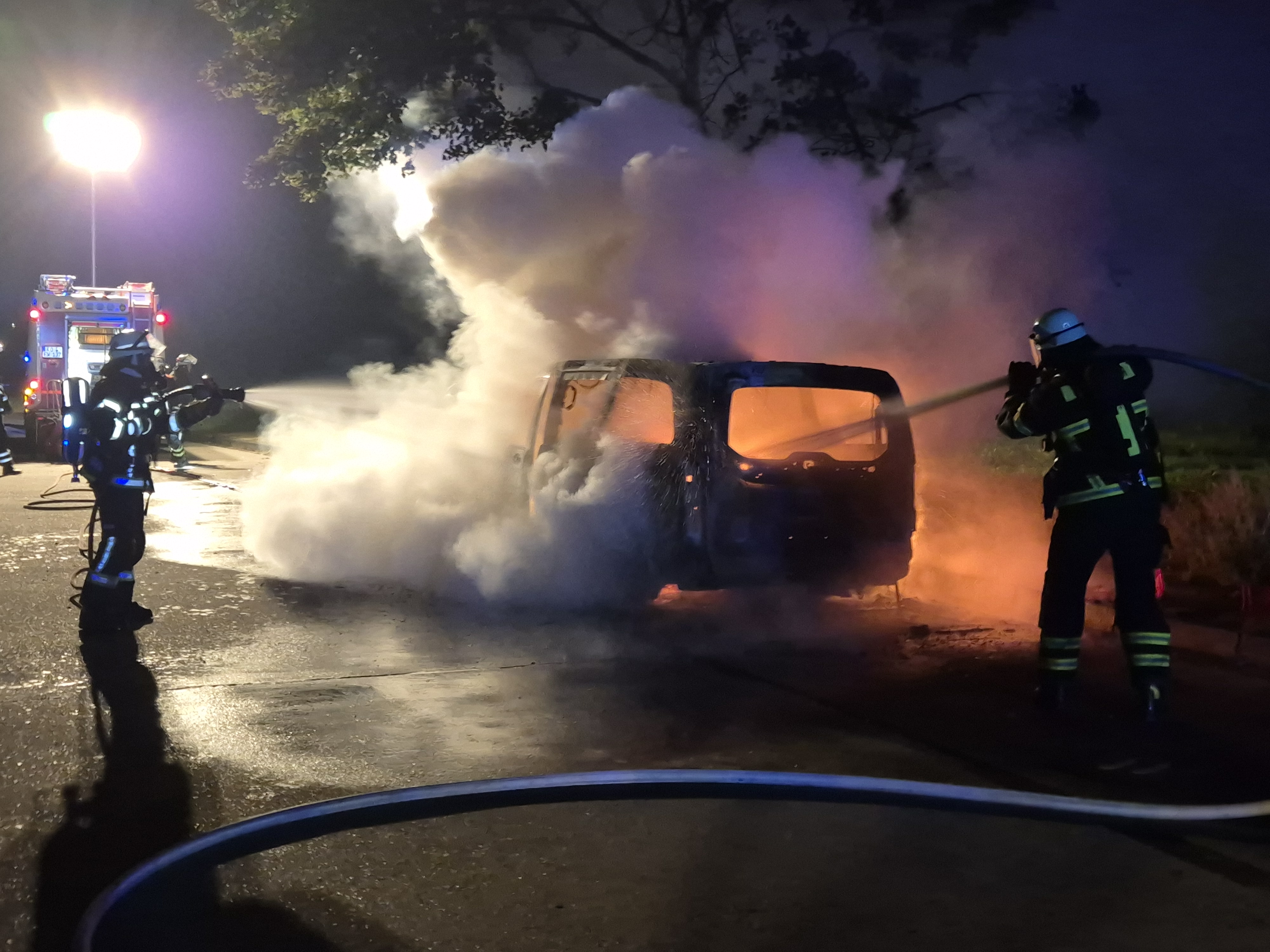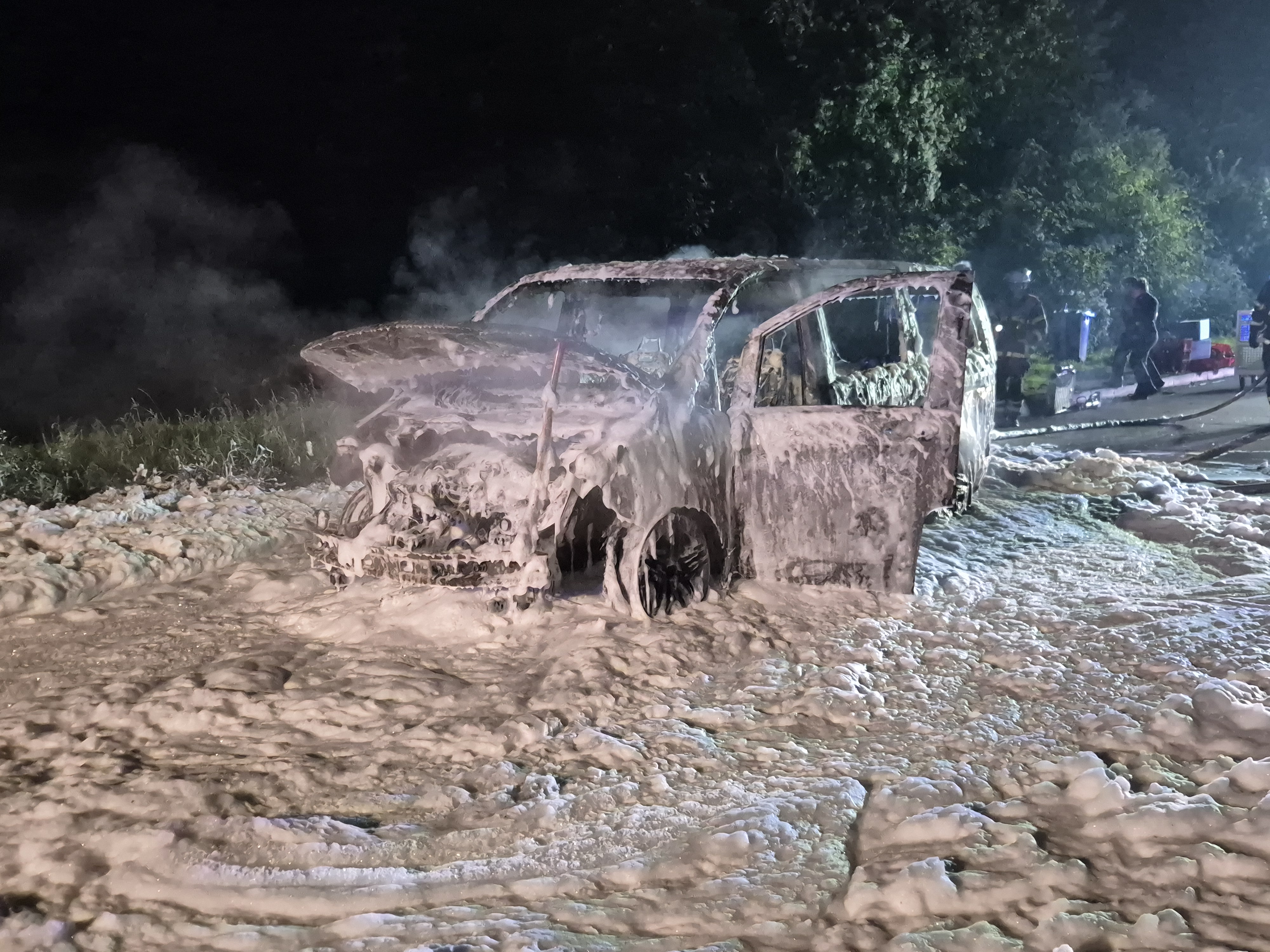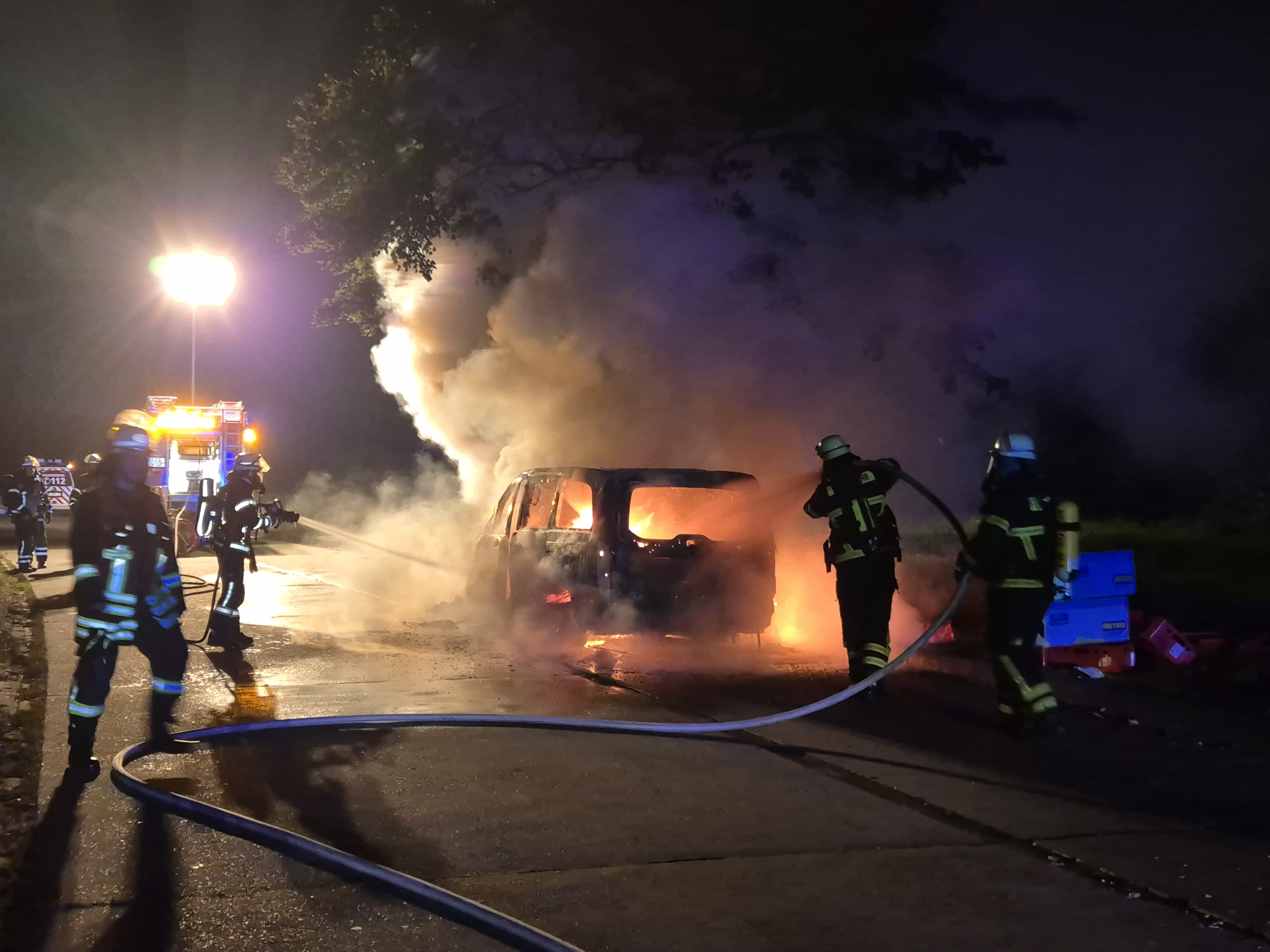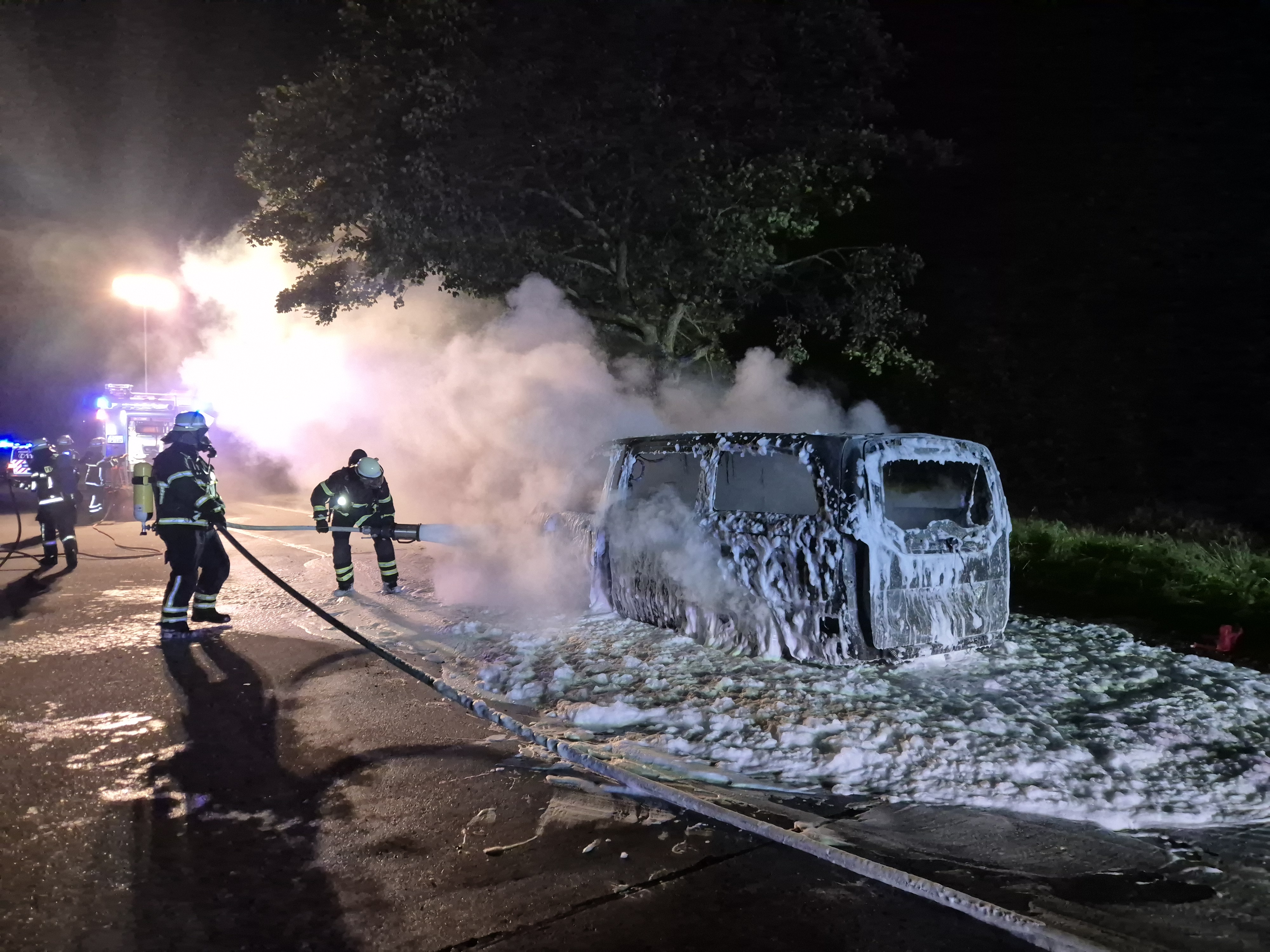 Mehrere Notrufe meldeten ein brennendes Fahrzeug auf dem Parkplatz Erdkaul auf der A 48. Beim Eintreffen der Feuerwehr stand der Van bereits im Vollbrand. Der Fahrer konnte sein Fahrzeug rechtzeitig verlassen und blieb unverletzt.